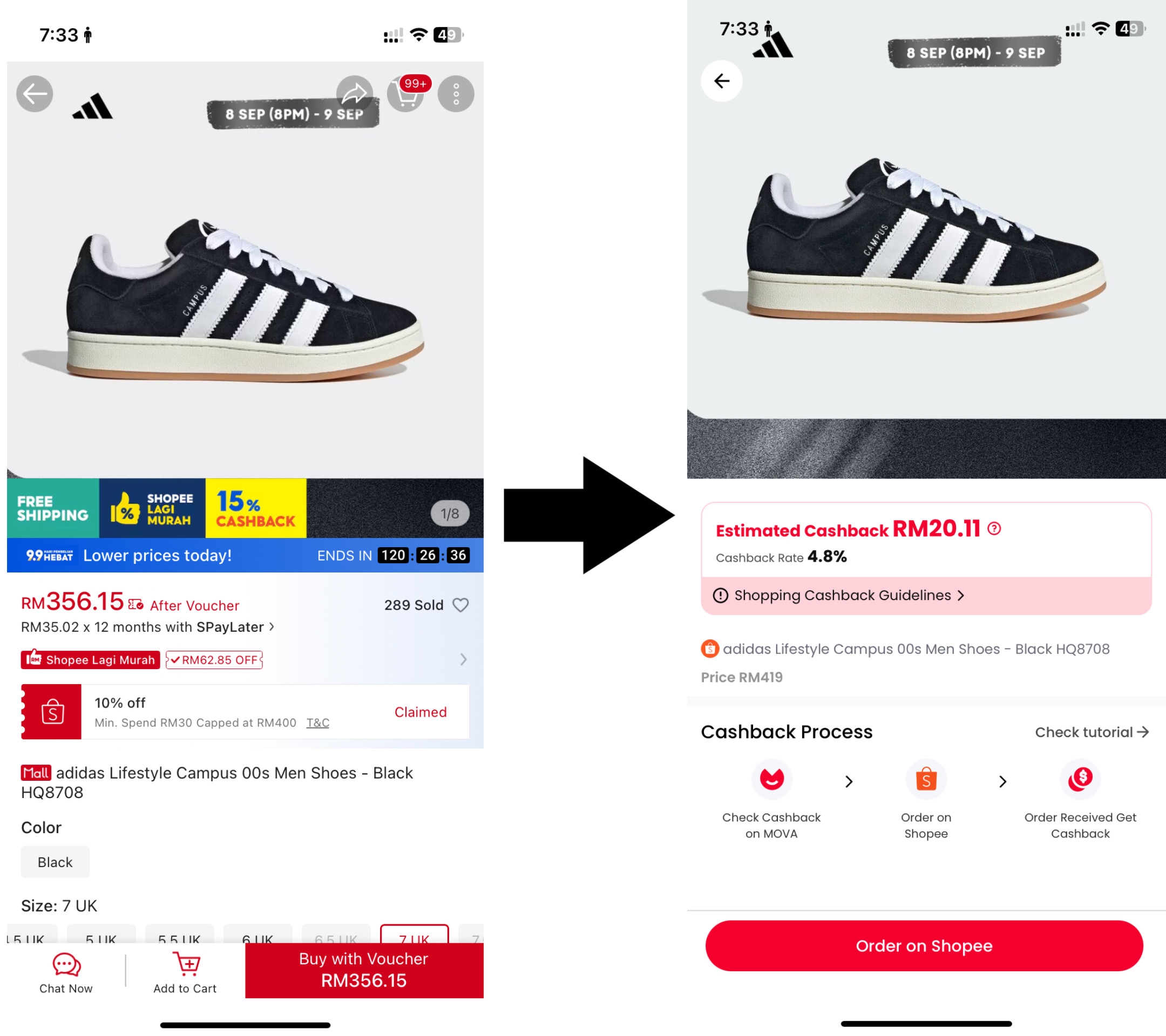 Bahagian paling menyeronokkan dalam MOVA ialah membeli-belah seperti biasa tetapi setiap kali, duit anda "beranak". Proses membeli amat mudah: buka aplikasi, pilih kedai atau produk yang anda mahu, buat pesanan, dan bayar seperti biasa. Bezanya, selepas pembayaran selesai, anda akan nampak jumlah cashback dikira secara automatik.